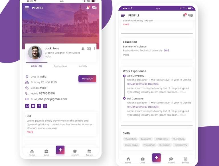 Manage your college activities directly through the admin interface. Save time reaching and managing your alumni and announce all your events directly through the portal.